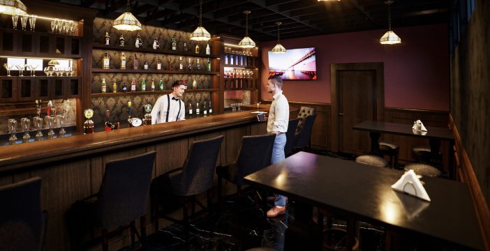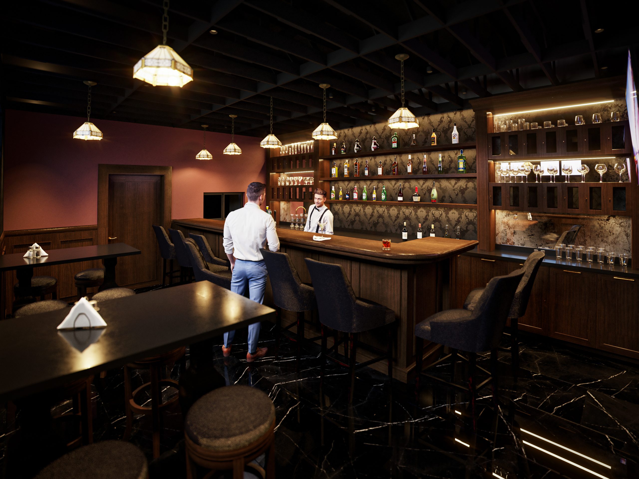 DISEÑO INTERIOR DE BAR UBICADO en el corazón del centro histórico de Mexicali. DESARROLLAMOS UN CONCEPTO ESTILO ART DECO con atmósferas que reflejan el glamour clandestino de la Era de la Prohibición de la década de 1920.