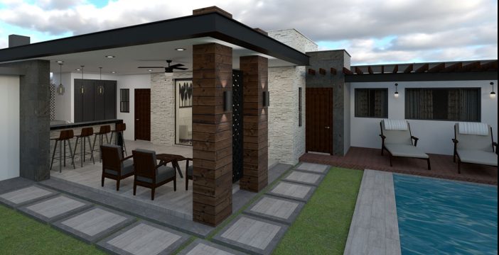 Ampliacion y Remodelación de sala y patio en Fraccionamiento Villafontana. Desarrollando un concepto Contemporáneo mezclando materiales naturales como la madera y fachaleta blanca con el concreo y acero para dar un toque energía y elegancia.