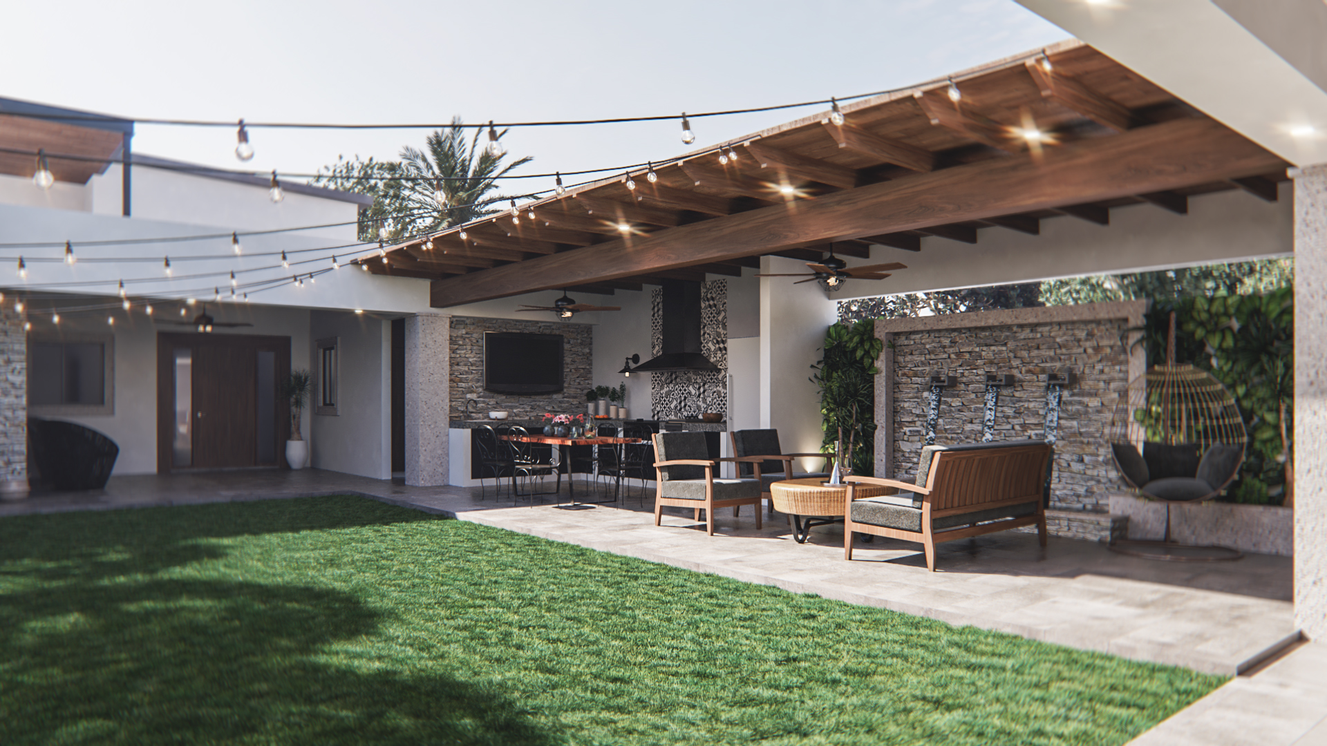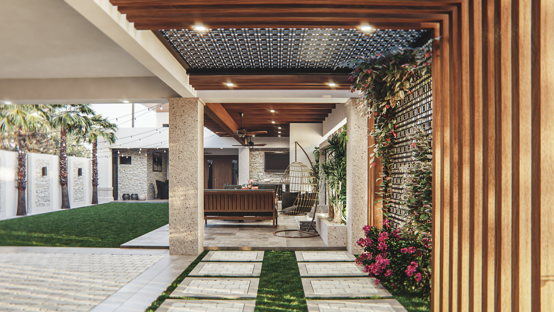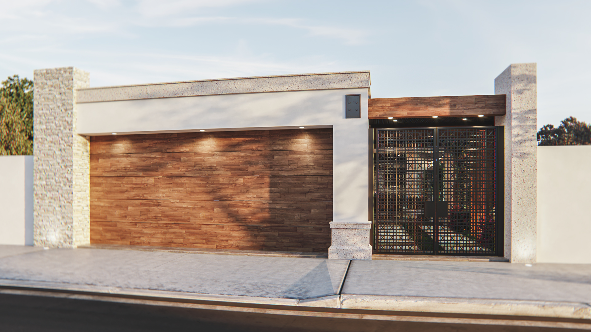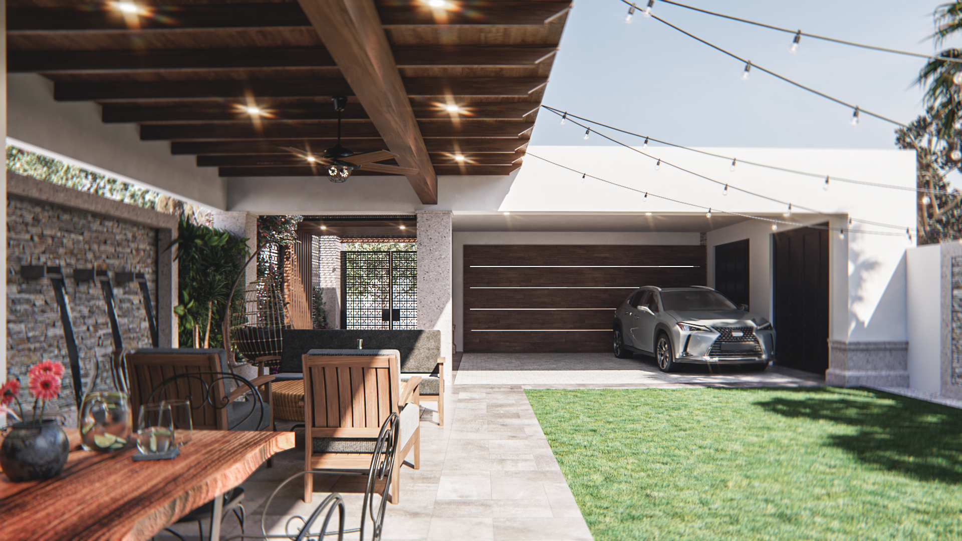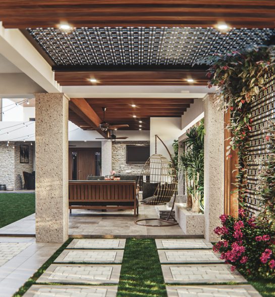 Remodelación arquitectónica de casa habitación en zona poniente de Mexicali, desarrollando un concepto colonial contemporáneo combinando distintos materiales para proporcionar equilibrio y belleza.