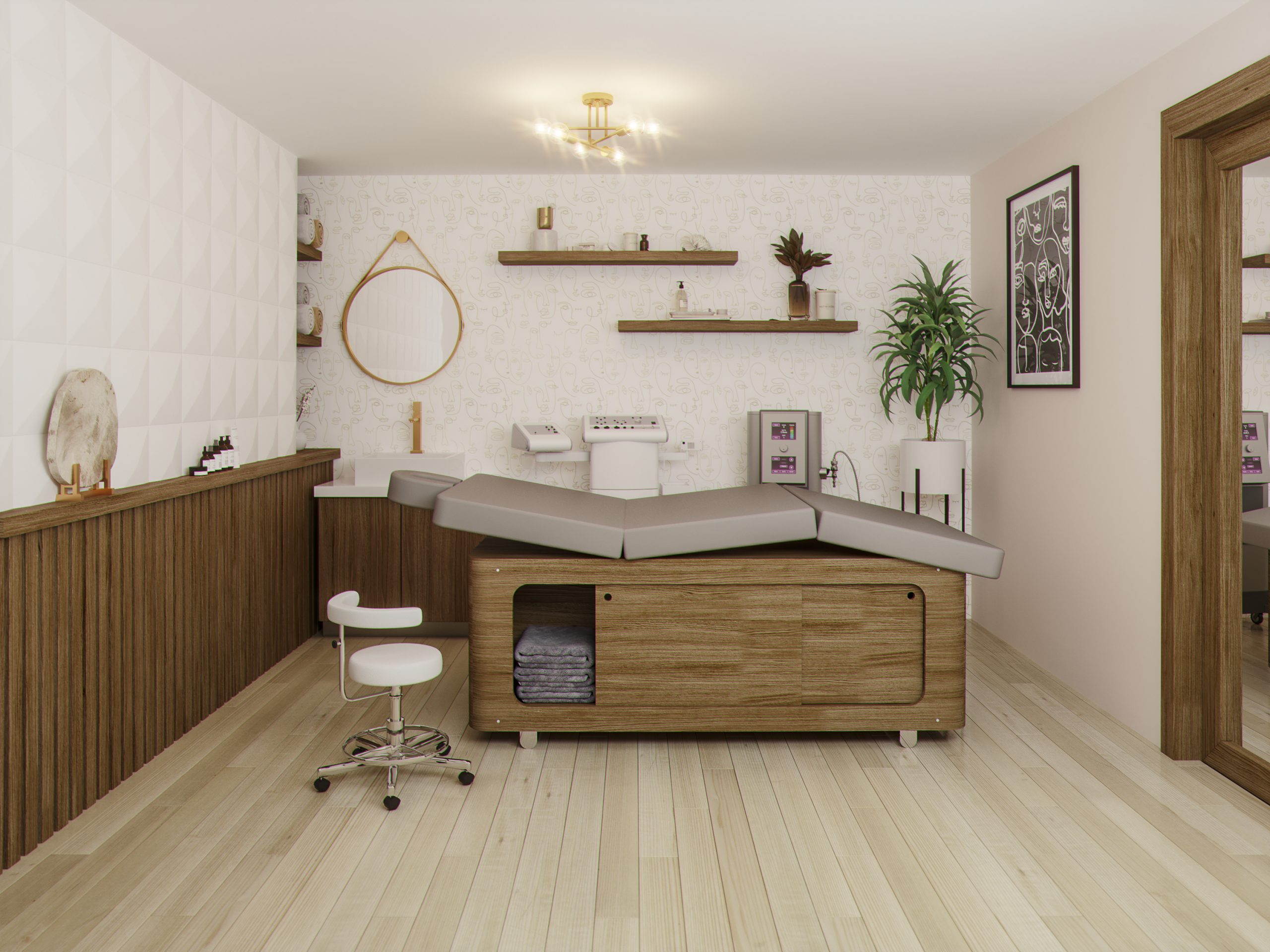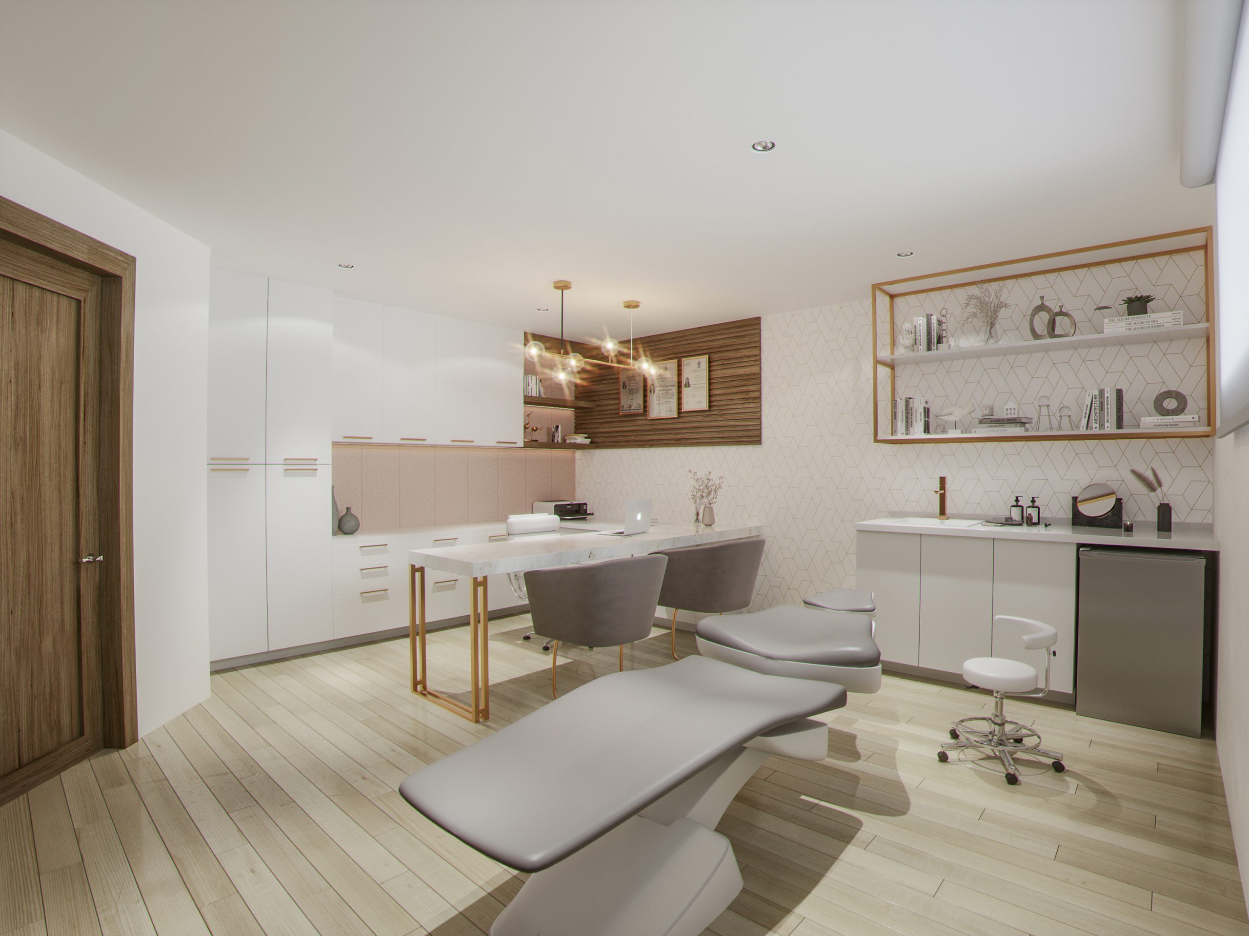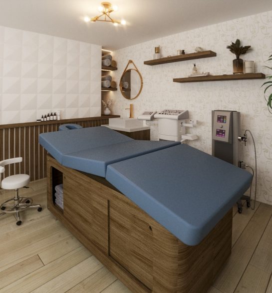 Desarrollo de proyecto de Diseño Interior de Spa de Colonia Centro, renovamos un edificio antiguo que anteriormente era utilizado para oficinas gubernamentales y se hizo la nueva distribución de espacios. Para el diseño interior se desarrolló un concepto basado en los colores del logotipo e imagen de la marca, utilizando tonalidades claras, con la finalidad de transmitir una atmósfera suave y amigable, generado tranquilidad en los usuarios. El dorado se utiliza en acentos como toque de elegancia.